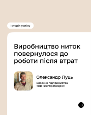 До повномасштабної війни ТОВ «Легпромсервіс» успішно працював на ринку сировини для текстильної та легкої промисловості. Після втрати виробничих потужностей, власник підприємства Олександр Луць почав шукати можливості для відновлення. Так, каже, натрапив в інтернетіна Програму підтримки економічної стійкості України. Підприємець отримав 896 тисяч гривень фінансової підтримки, додав власні кошти, закупив необхідне обладнання для виробництва та пакування продукції