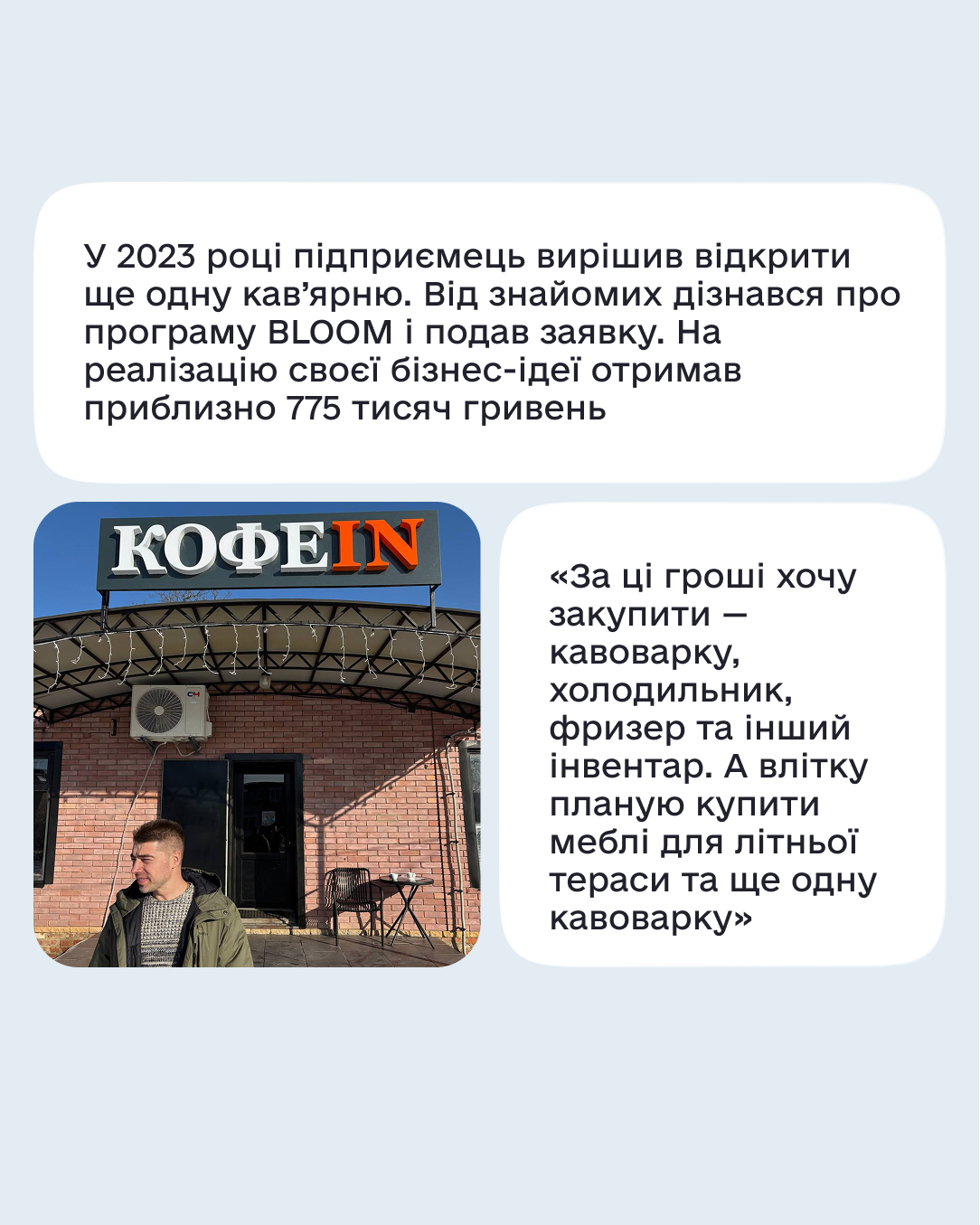 «Навесні 2023 року я взяв в оренду приміщення 9 м2 на території автовокзалу, облаштував його під кав’ярню і почав працювати»