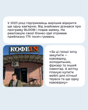 На реалізацію своєї бізнес-ідеї Андрій отримав приблизно 775 тисяч гривень та додав понад 200 тисяч гривень власного вкладу. Чоловік каже, що планує створити три нові робочі місця та зберегти два існуючі, а також розвивати кав’ярню у своїй громаді