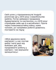 За час своєї підприємницької діяльності Андрій спробував себе у різних напрямках. Та через початок повномасштабного вторгнення всю його діяльність довелося поставити на паузу